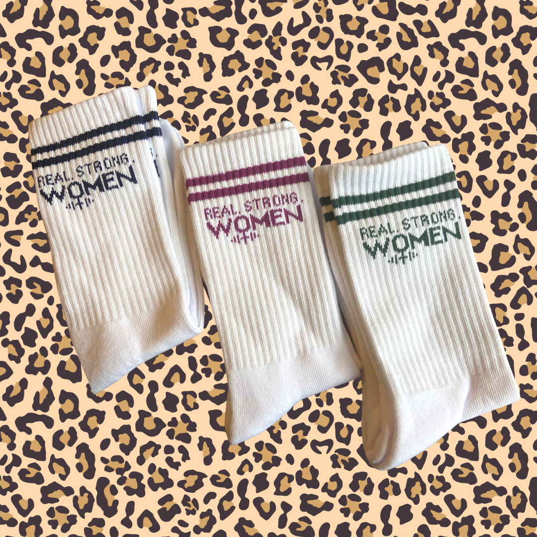 Available in a lush matt feel petrol blue, teal, or bright blue with the Real Strong Women logo